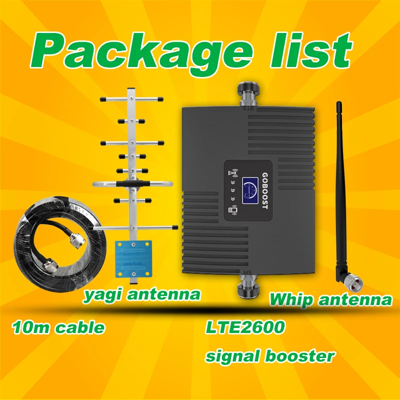 Посылка =Усилитель сигнала LTE 2600 МГц * 1 или900 МГц или1800 МГц или2100 МГц илиУличная Антенна yagi * 1Кабель 10 м * 1Внутренняя антенна для плетения * 1Источник питания ЕС/Австралии/Великобритании/США * 1