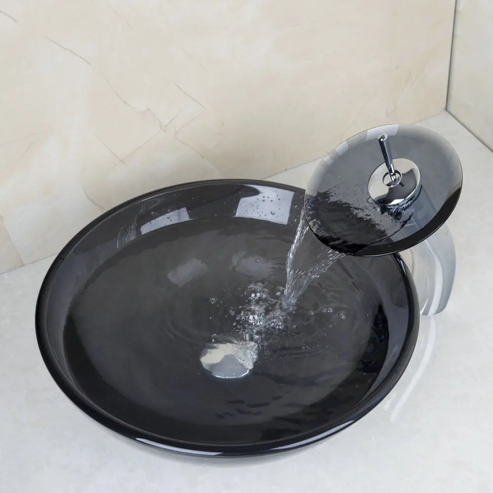 Заппо Ванная комната раковина твердая Стекло бассейна кран комплекты закаленное водопад Стекло раковина столешница туалет смеситель для мойки кран для раковины, кран для раковины,