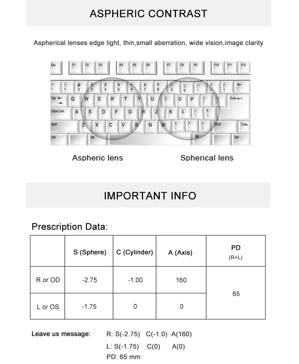 1,56 асферические линзы Рекомендуемая мощность: SPH: -0,50 ~-4,00; CYL: -0,50 ~-2,00 SPH: + 0,50 ~ + 4,00; CYL:+ 0,50 ~ + 2,00 1,61 асферические линзы Рекомендуемая мощность: SPH: -0,50 ~-6,00; CYL: -0,50 ~-2,00 SPH: + 4,00 ~ + 6,00; CYL:+ 0,50 ~ + 2,00 1,67 асферические линзы Рекомендуемая мощность: SPH: -3,00 ~-8,00; CYL: -0,50 ~-2,00 SPH: + 4,00 ~ + 8,00; CYL:+ 0,50 ~ + 2,00