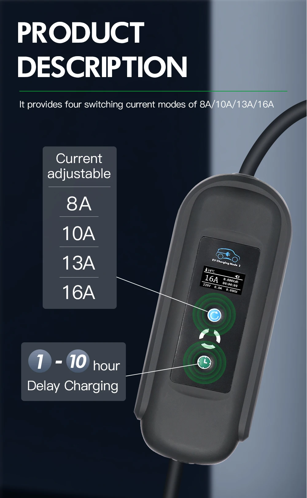 EV Зарядное устройство 16A Тип 1 предварительно установленное время зарядки EV Зарядное устройство таймер Функция подходит для всех Тип 1 EV автомобили зарядки