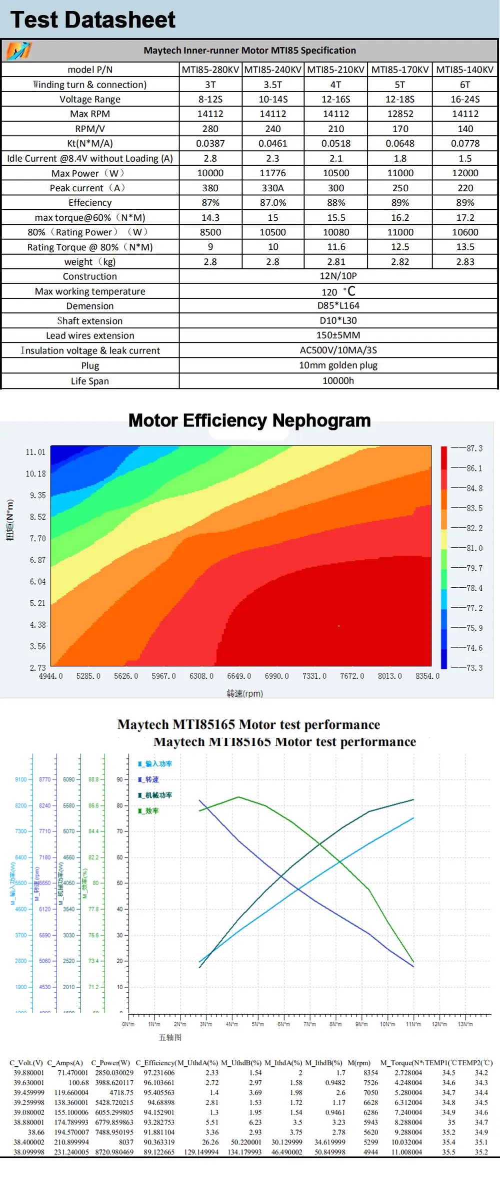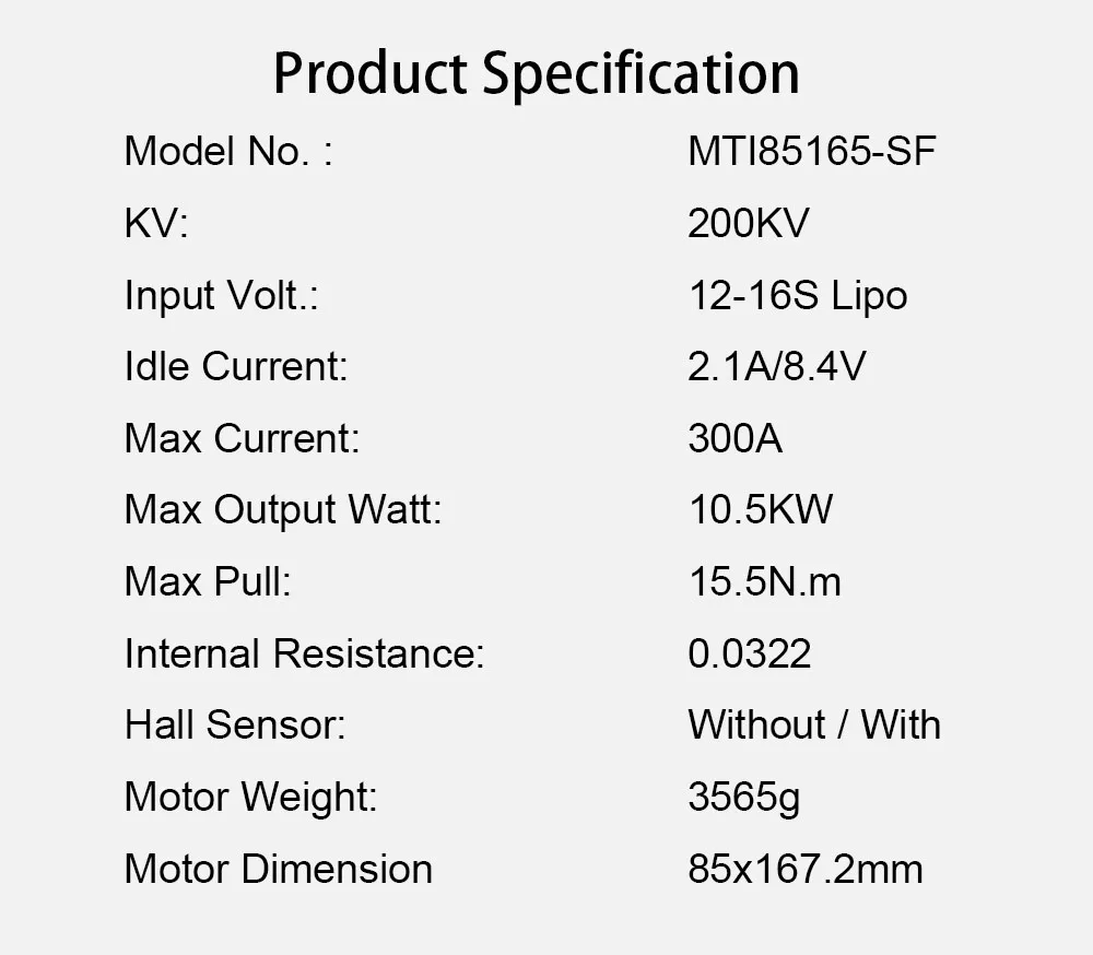 Гидрофольгированный двигатель Maytech 85165 200кВ 16S, 10,5квт для ...