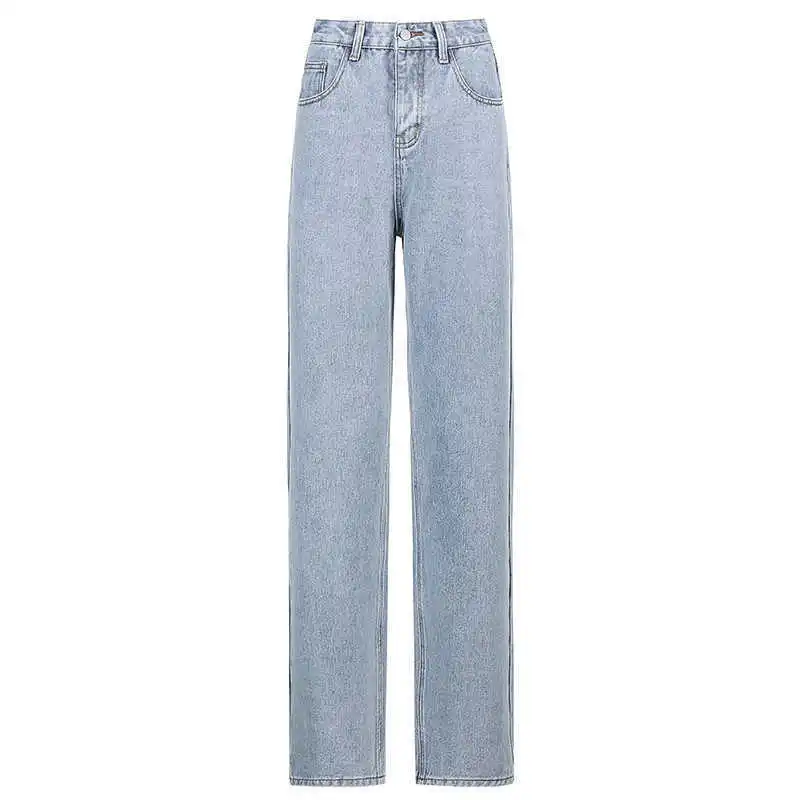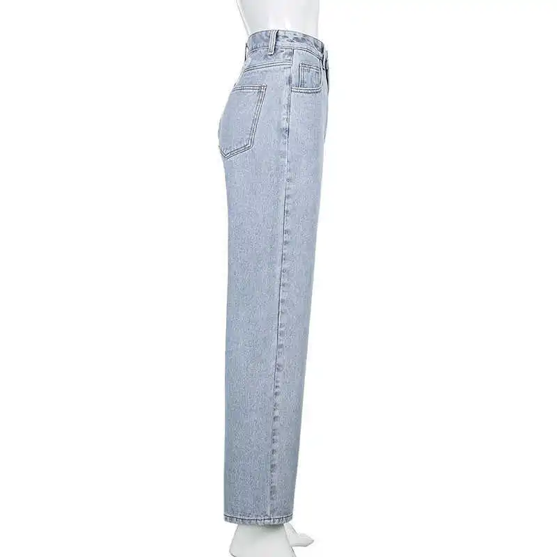 Джинсы женские, прямые, с высокой талией, в стиле Харадзюку