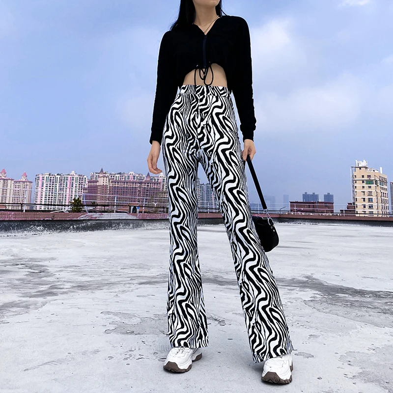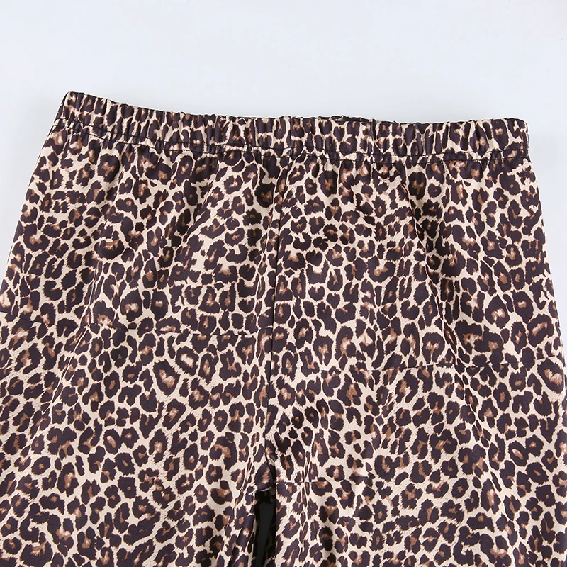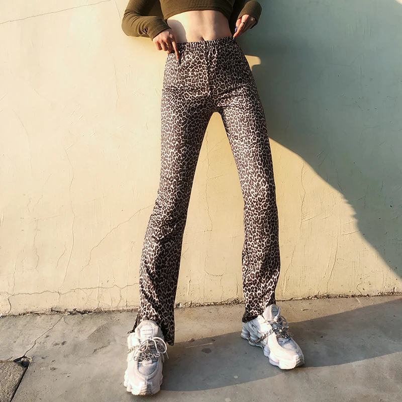 Модные леопардовые расклешенные брюки Y2K, женские брюки с высокой ...