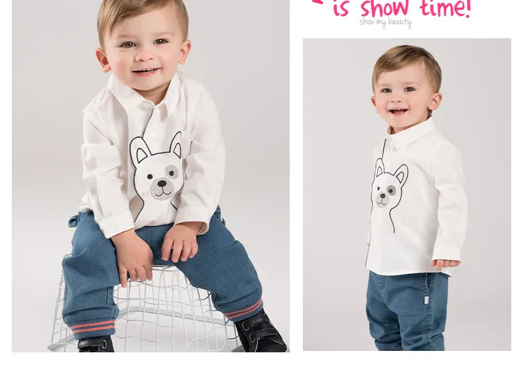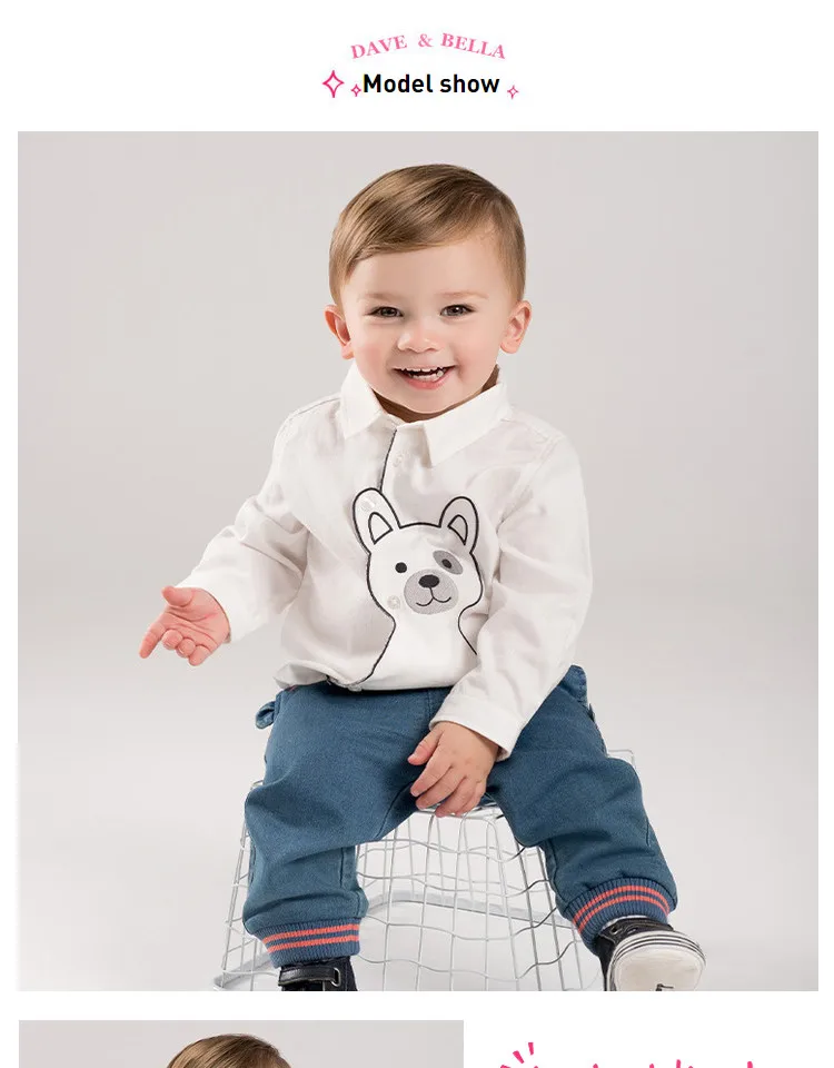 DBX16443, демисезонная Модная рубашка с мультяшным принтом для маленьких мальчиков, топы для малышей, детская одежда высокого качества
