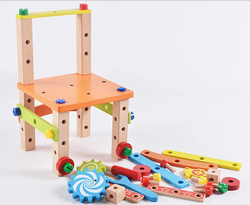 Детские Монтессори Деревянные сборочные игрушечные кресла, гайки, комбинация, головоломка, строительные блоки для детей, раннее образование, от 2 до 4 лет, подарок