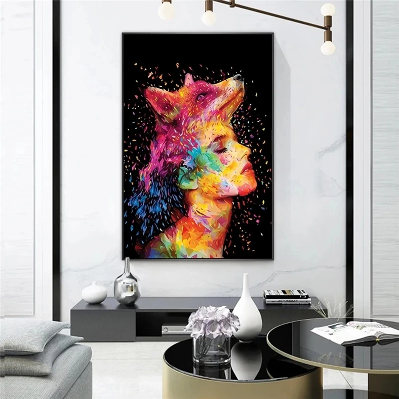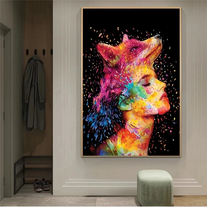 Современный граффити для девочек с лисой на передней части холст картины Плакаты и принты Cuadros настенные картины для Гостиная домашний декор