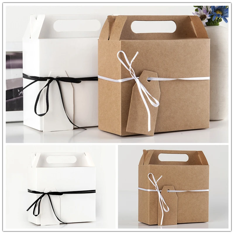 Большие коробки для конфет из крафт-бумаги с ручкой, Подарочная коробка для снэков, печенья, Дня Святого Валентина, свадьбы, дня рождения, вечеринки