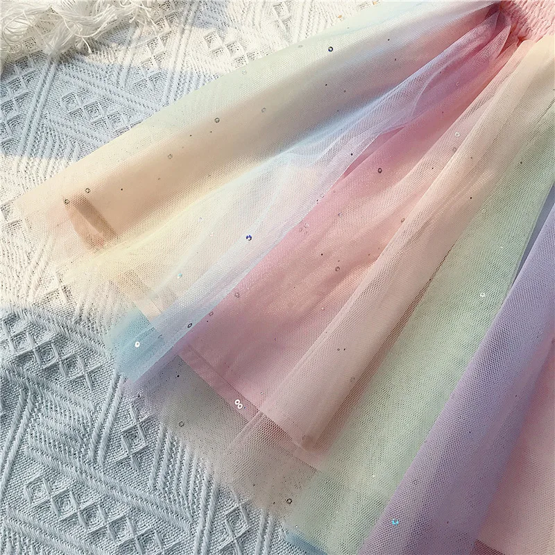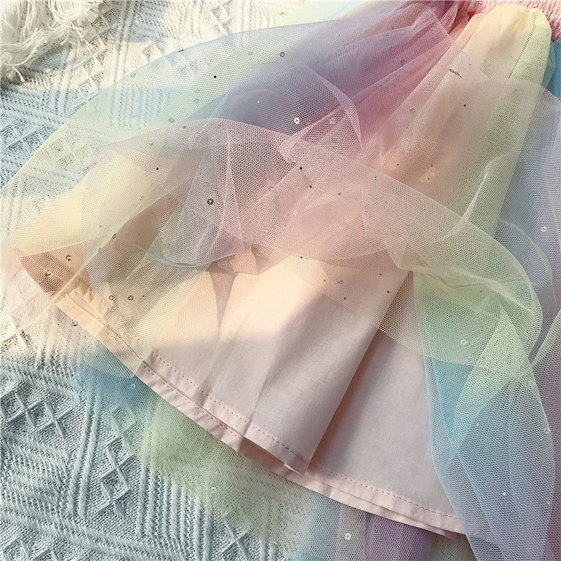 Платье для девочек с радужными лямками, Сетчатое платье принцессы, ...