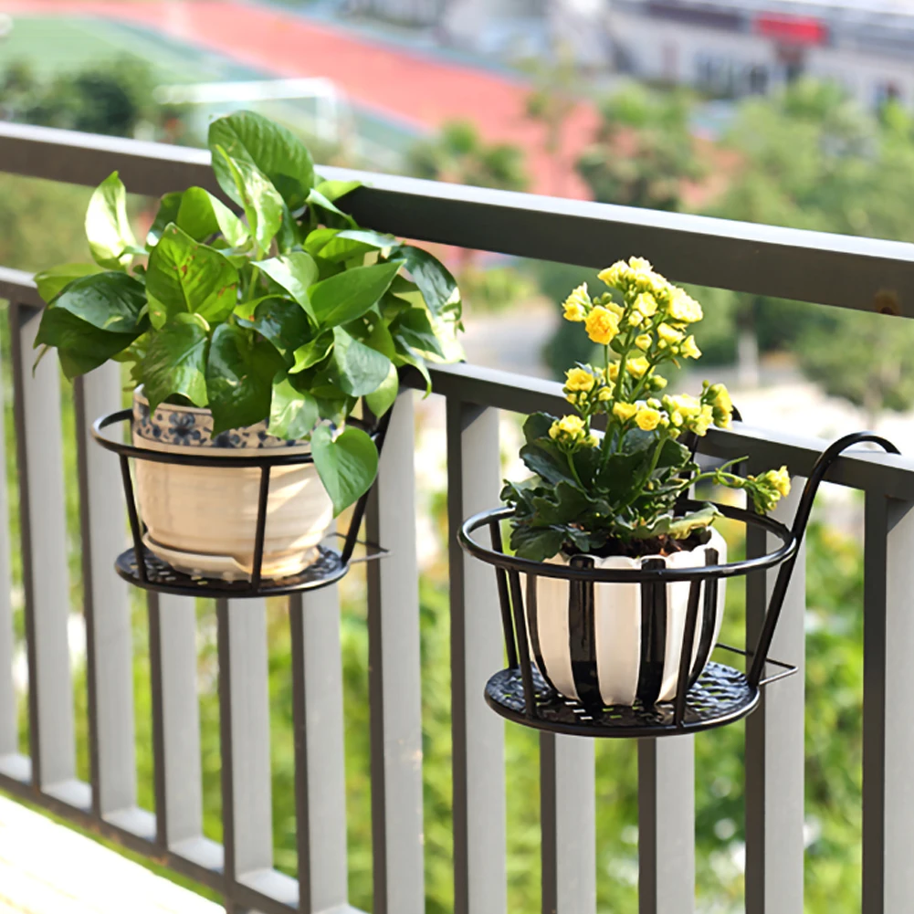 Садовые принадлежности, подвесные железные стойки для растений, Балконный круглый цветочный горшок, перила, забор, открытый, 1 шт.
