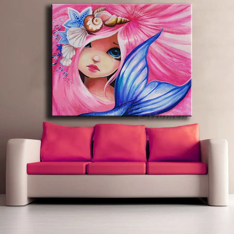 Когда-либо в настоящий момент 5D кристальная картина маленькая Русалка плачет девушка картинки для Домашнего Дизайна Спальня Модульная картина без рамки 5L1680