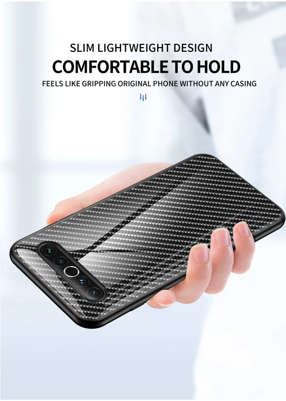 ХарактеристикиLuxury Carbon Fiber Pattern Tempered Glass Case