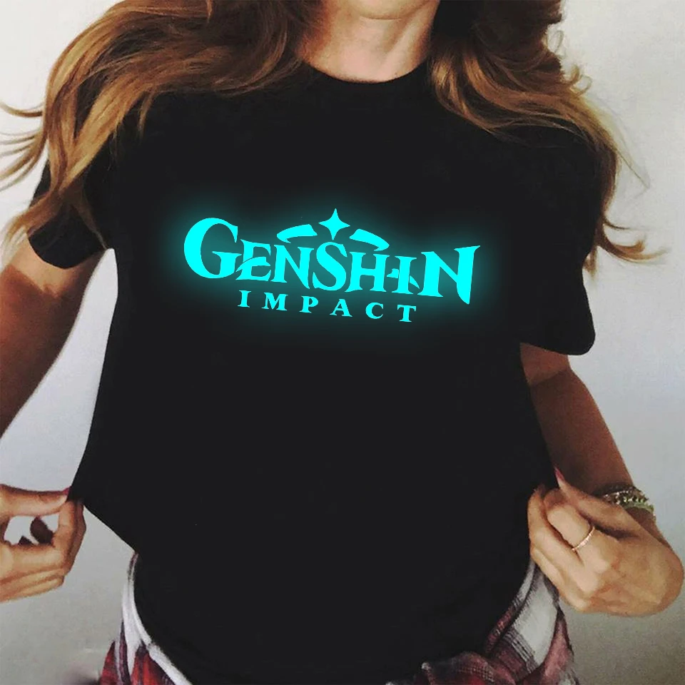 Футболка Genshin Impact женская светящаяся с принтом, топ 90-х годов в стиле Харадзюку, милая рубашка с коротким рукавом, женские футболки