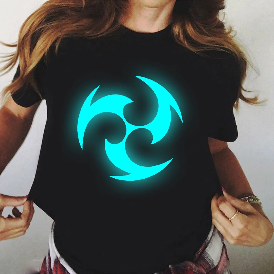 Genshin Impact светящаяся Футболка с принтом, женские футболки в стиле 90-х, графическая футболка, топы в стиле Харадзюку, футболка с коротким рукавом, женские футболки