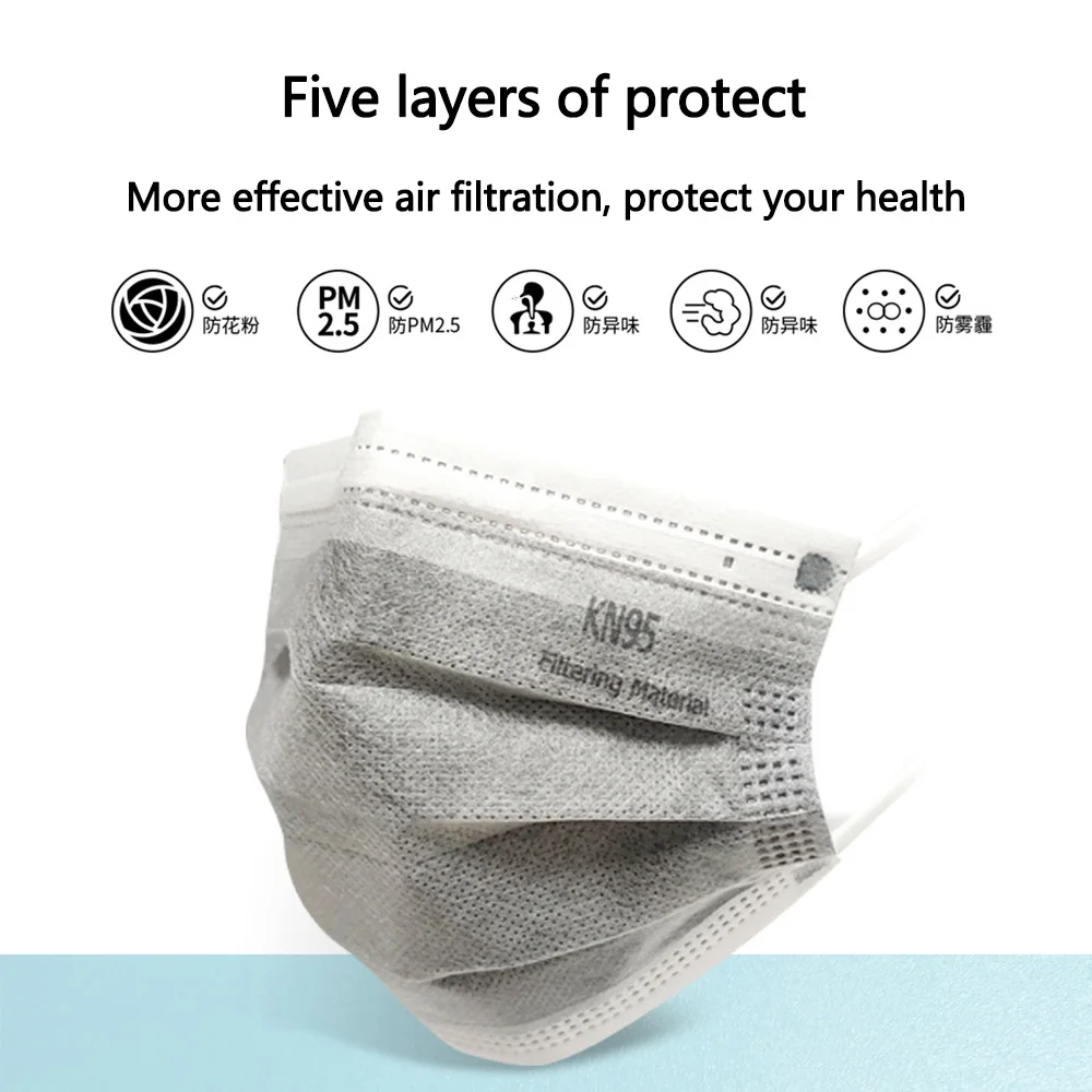 20 шт. 5 слоев серый KN95 маска с активированным углем респиратор K...