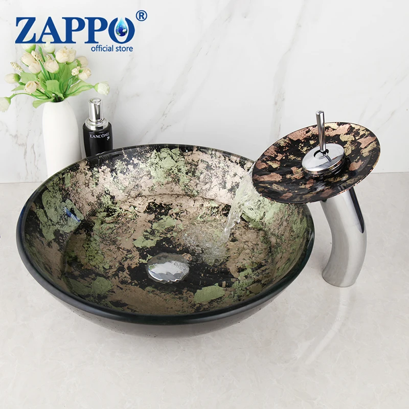 Заппо в европейском стиле умывальник, туалет закаленное Стекло ручная боль чаша Нажмите Туалет Ванная комната раковина для ванной латунные краны для ванной комнаты смесителя комплект