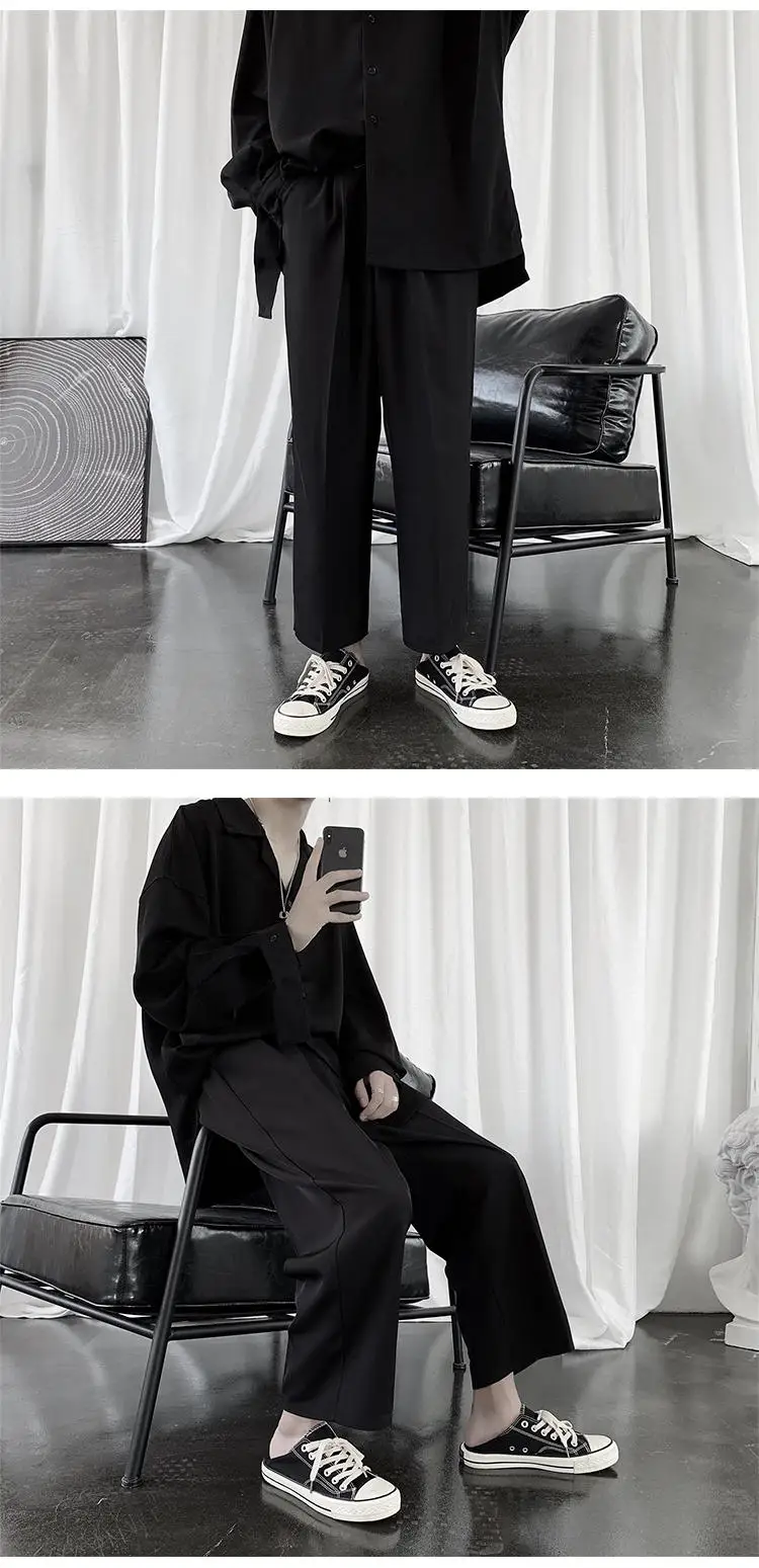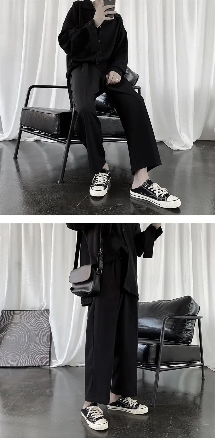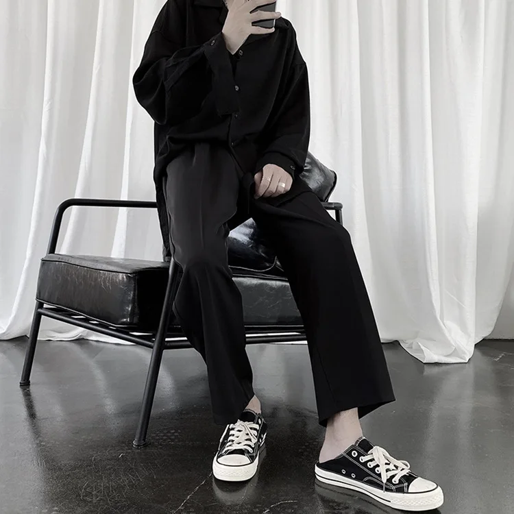 Брюки мужские однотонные тонкие черные свободного покроя, деловой Повседневный костюмный костюм, школьная форма JK, на лето