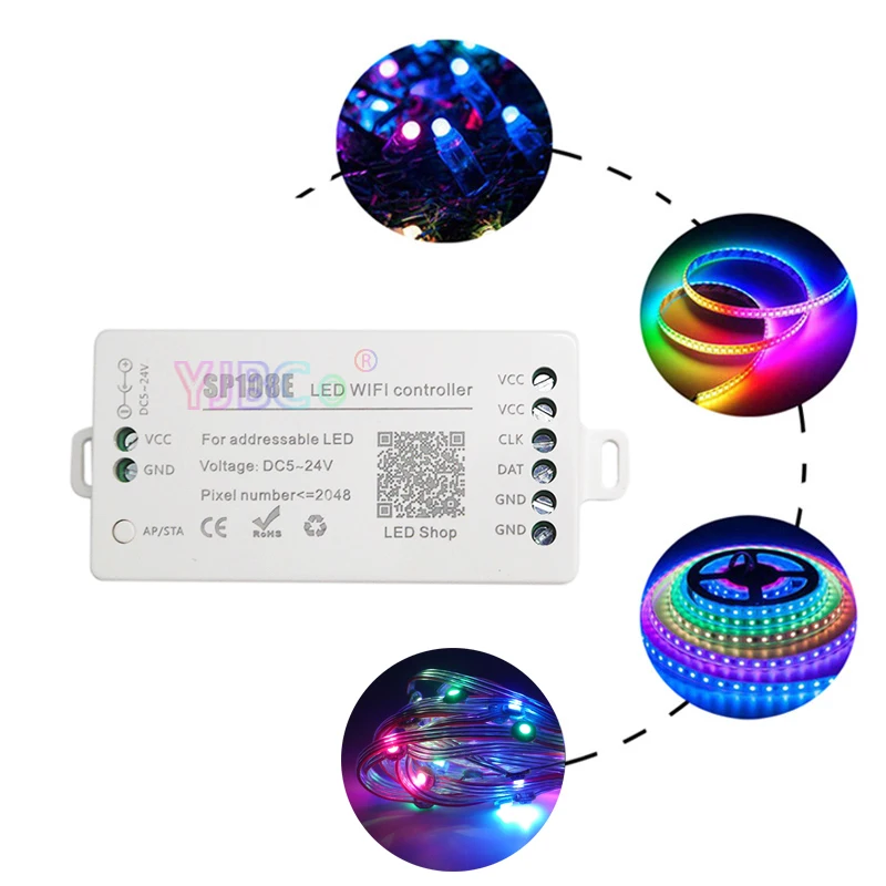 Волшебный Wifi светодиодный Управление; SP108E RGB пикселей светодиодный полосы модули светильник Smart APP Беспроводной Управление IOS 10Android 4,4 DC5V 12V 24V