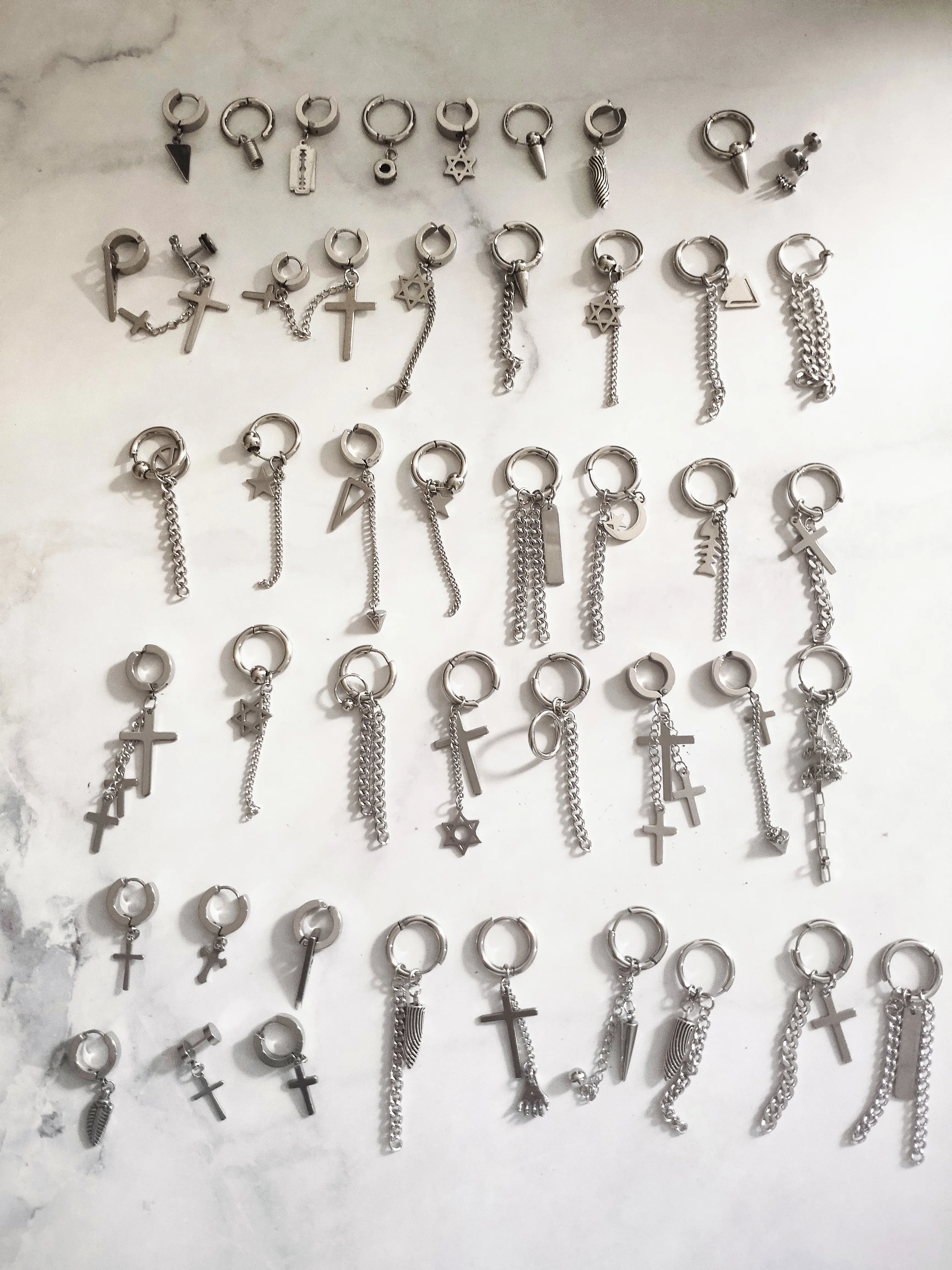 Серьги-гвоздики SOHOT, в виде Луны, звезды, рыбьей кости, мужские, готические, титановые, стальные, листовые, треугольные, геометрические, в стиле панк, несколько улиц, унисекс крест