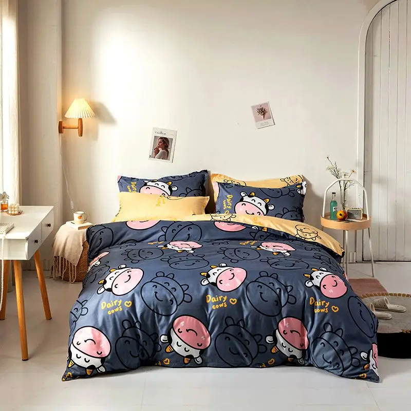 Детский комплект постельного белья с реактивным принтом, Мультяшные коровы, одеяло, покрывало, простыня, наволочка, постельное белье для студентов, Комплект постельного белья