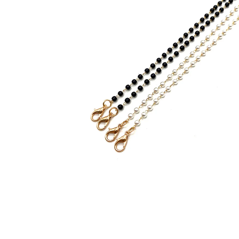 Модная акриловая Хрустальная цепочка для очков, шнур для очков, шнурок с белыми и черными бусинами, ожерелье для очков, металлическая цепочка для солнцезащитных очков