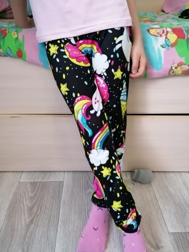 Доставка очень быстрая, штанишки очень приятные,хоть и синтетика,не стеклянная,мягкая,принт точно как на фото,рекомендую