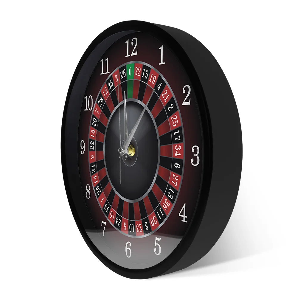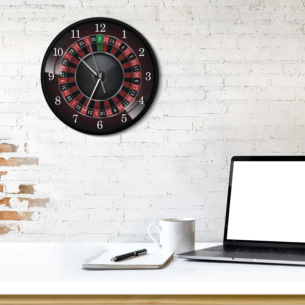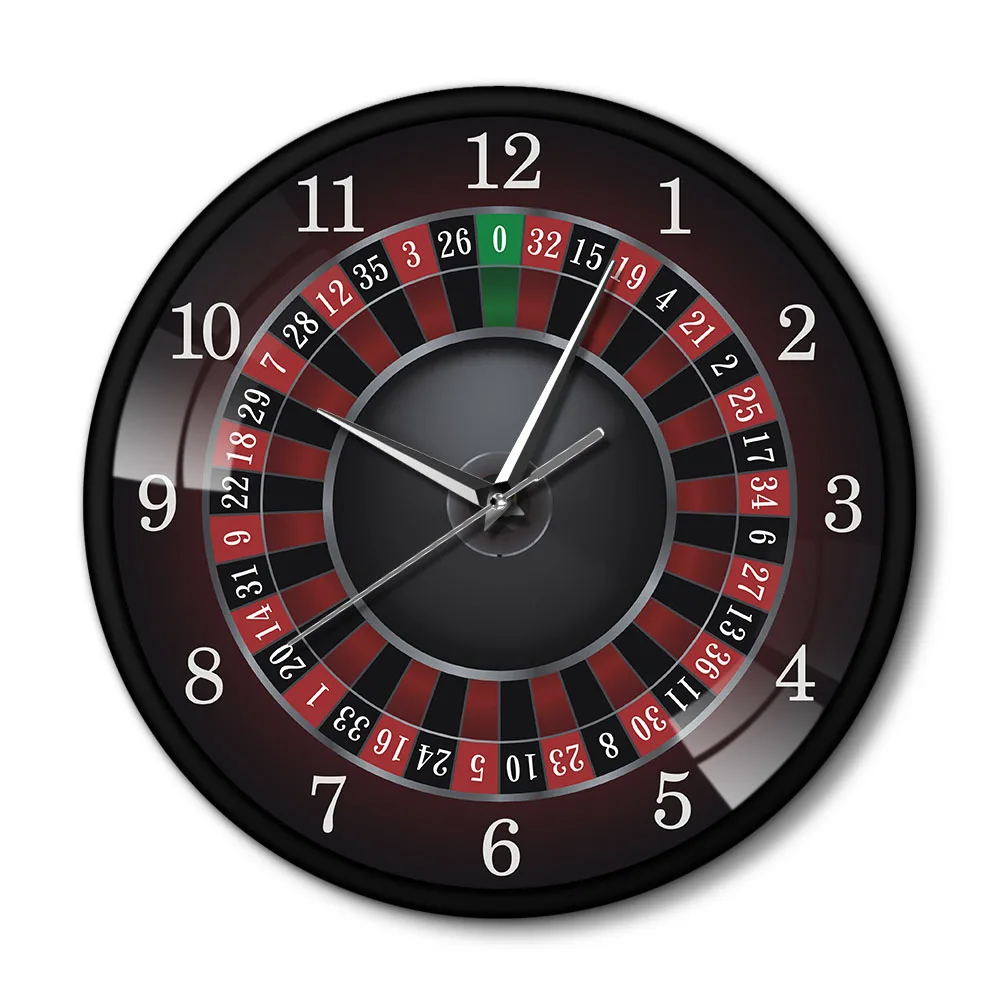 Покерная рулетка, настенные часы с черной металлической рамкой, игровая комната Лас Вегаса, Настенный декор, часы, часы, азартные игры, казино, подарок
