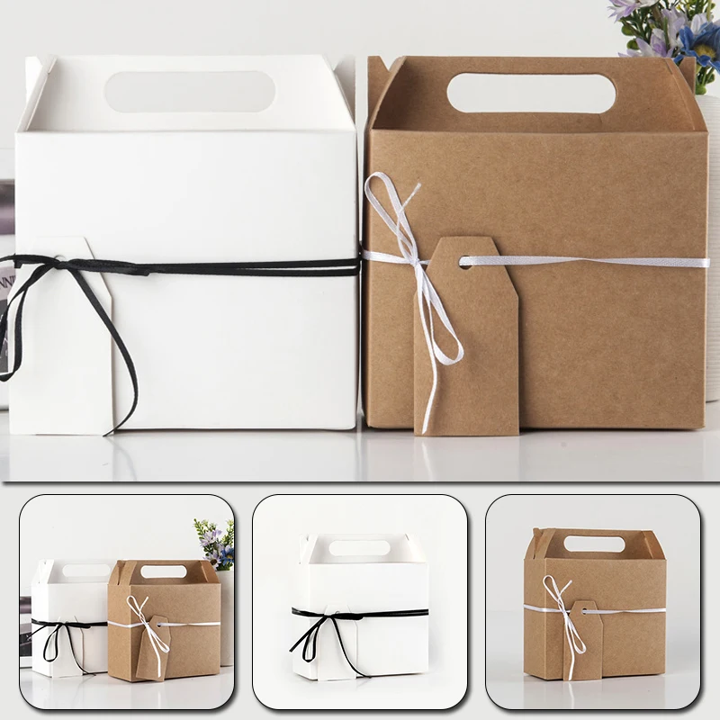 Большая подарочная коробка для печенья, конфет с ручкой, коробки для конфет из крафт-бумаги, на День святого Валентина, свадьбу, день рождения, упаковочная коробка