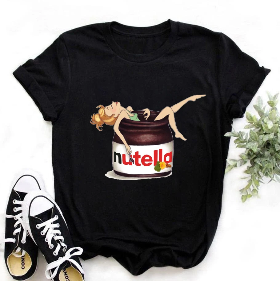 Женская футболка с принтом Nutella, кавайная модная футболка в стил...