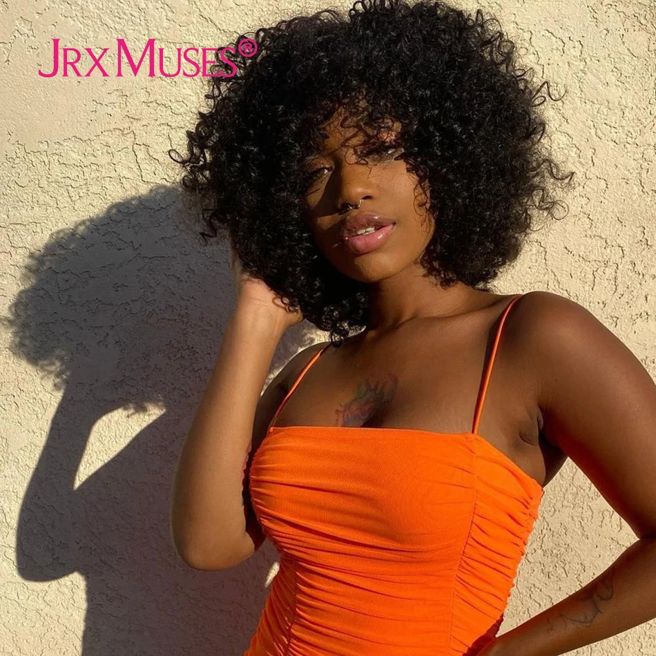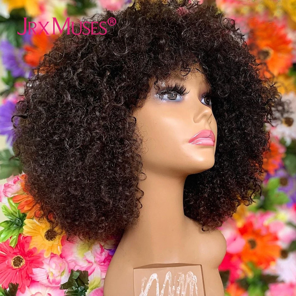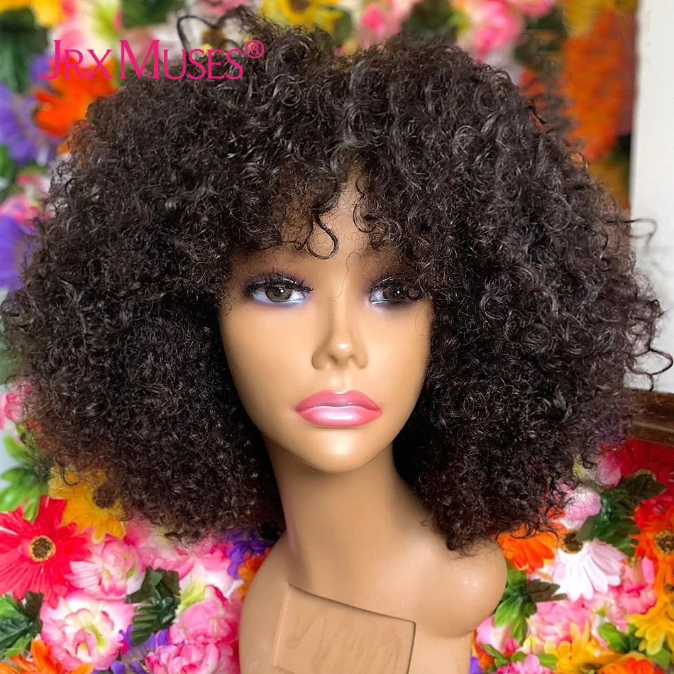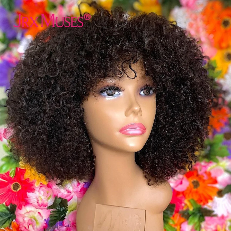 Кудрявые вьющиеся парики с челкой, полностью машинное изготовление, Короткие парики с бахромой, бразильские кудрявые человеческие волосы, парики для черных женщин, без клея