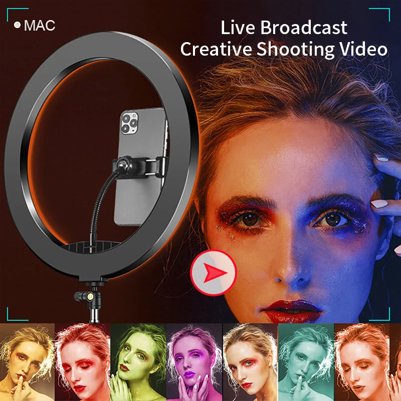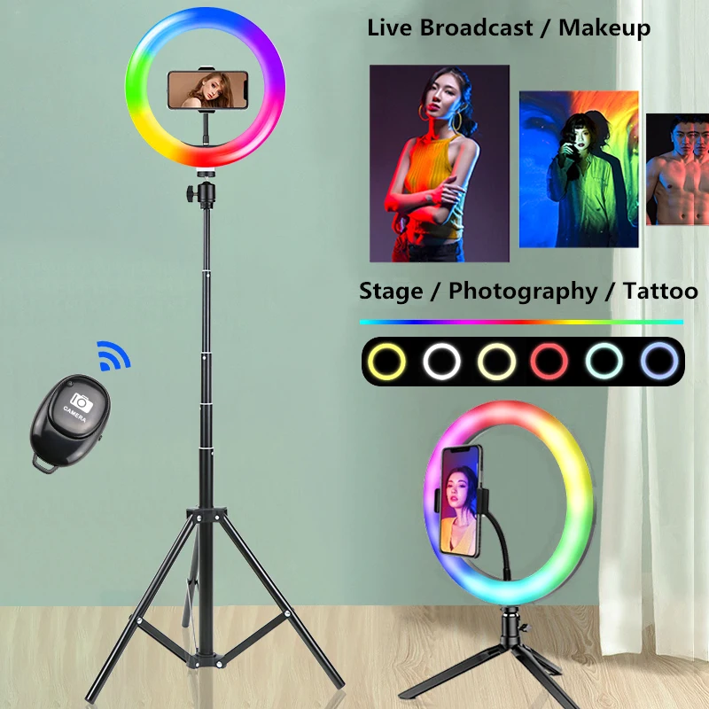 Светодиодный кольцевой светильник с регулируемой яркостью для селфи, rgb-камера, USB кольцевая лампа для телефона, заполняющий светильник для фотосъемки, с держателем для телефона, с дистанционным управлением, лампа для видеосъемки