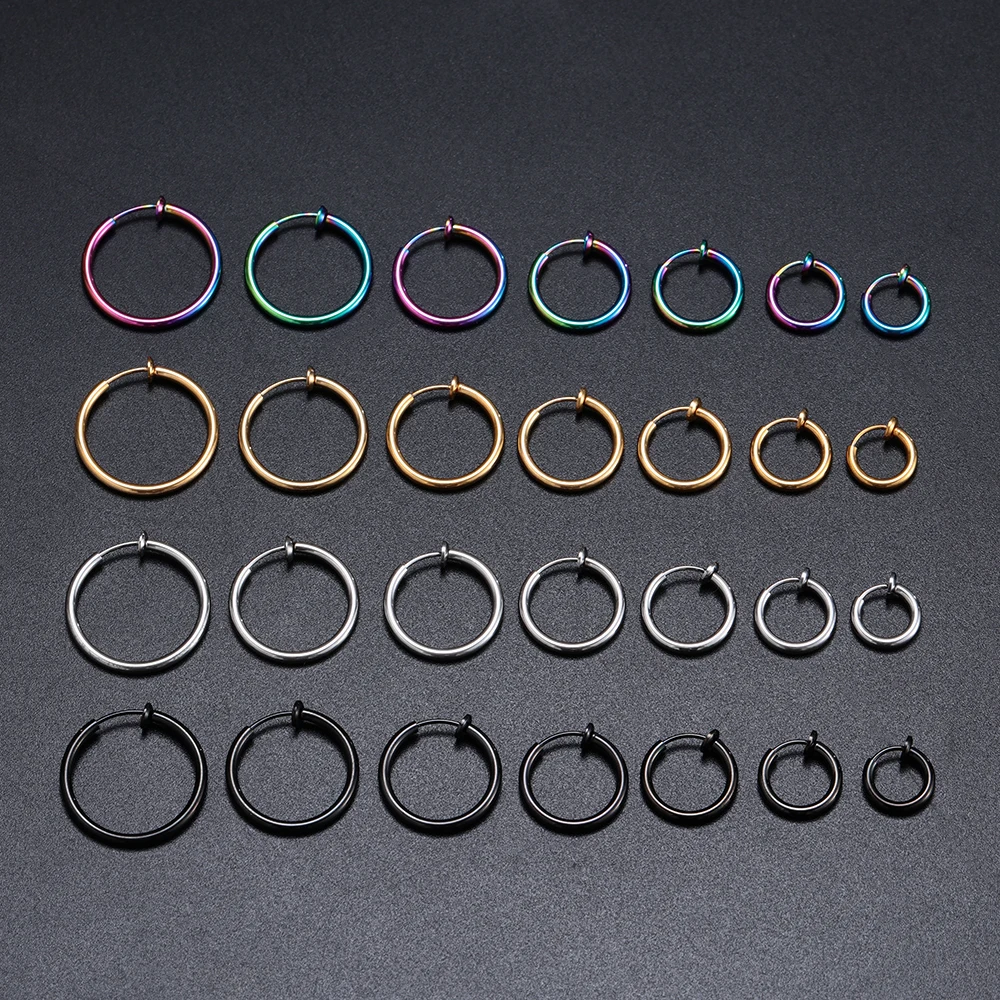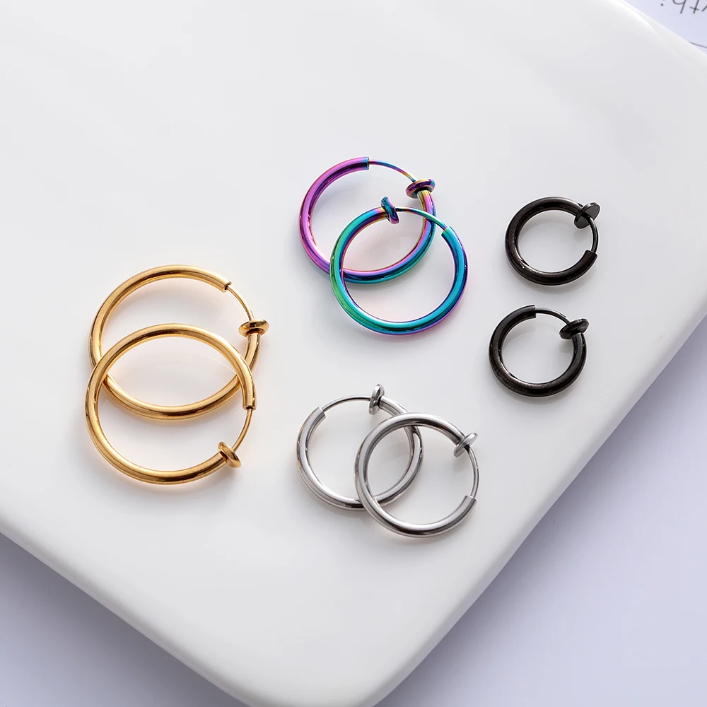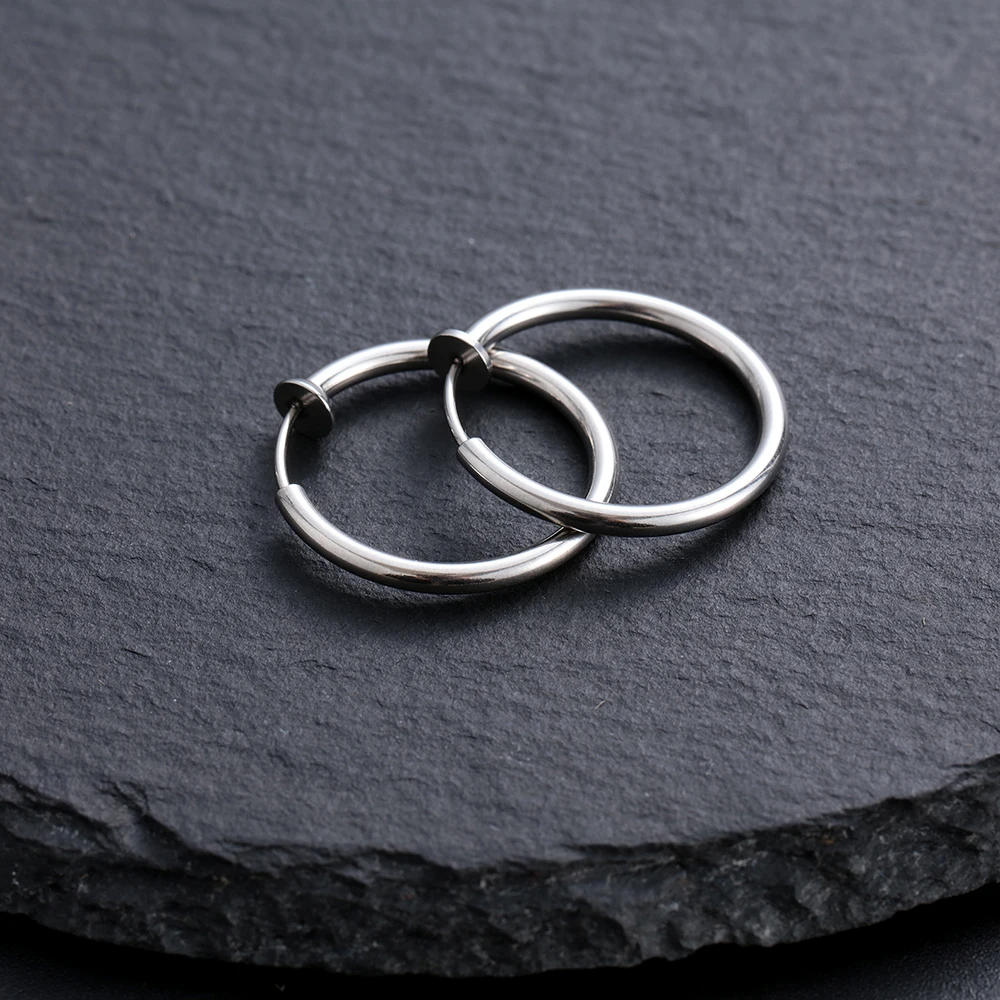 Серьги-кольца выдвижные без пирсинга для мужчин и женщин, классические украшения из нержавеющей стали в стиле хип-хоп, модный подарок, 1 пара, 8-20 мм