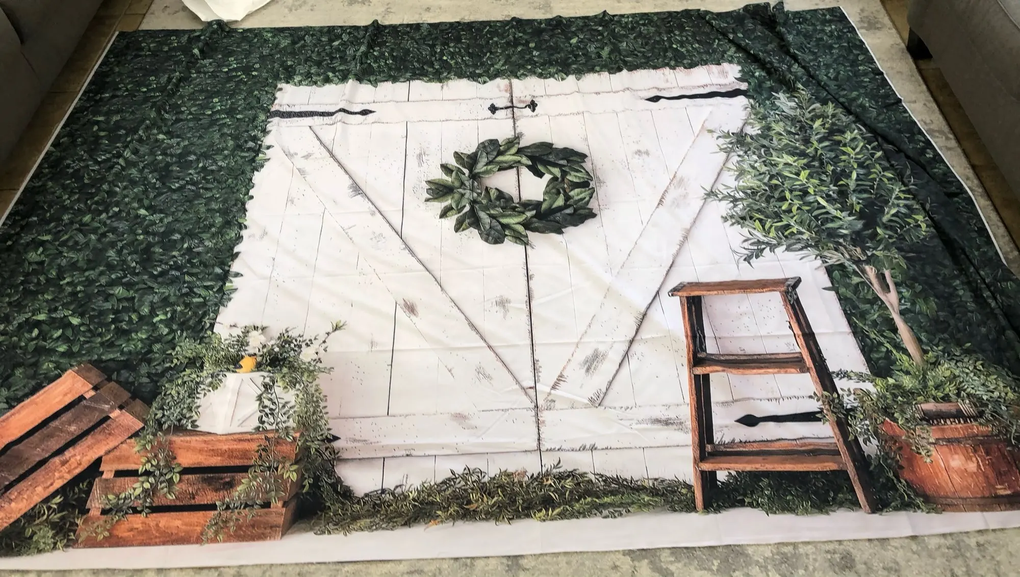 Фон для фотосъемки новорожденных с изображением фермы и клубники