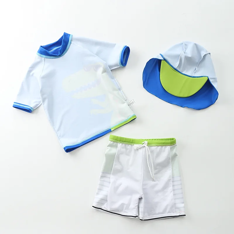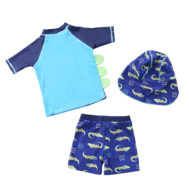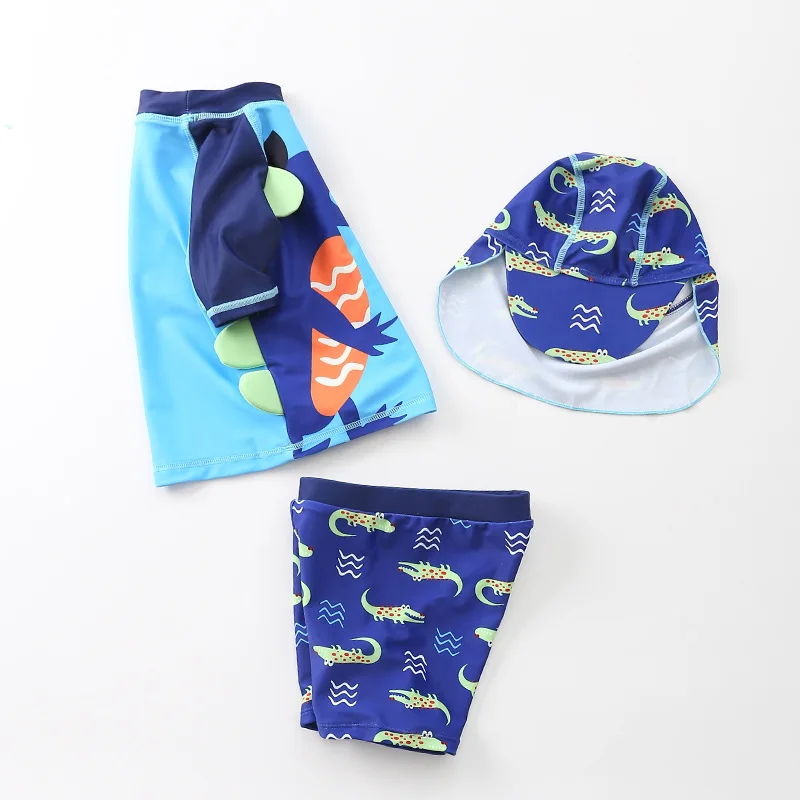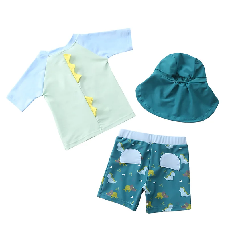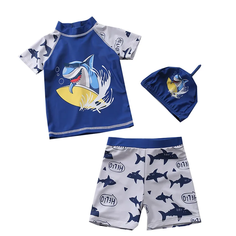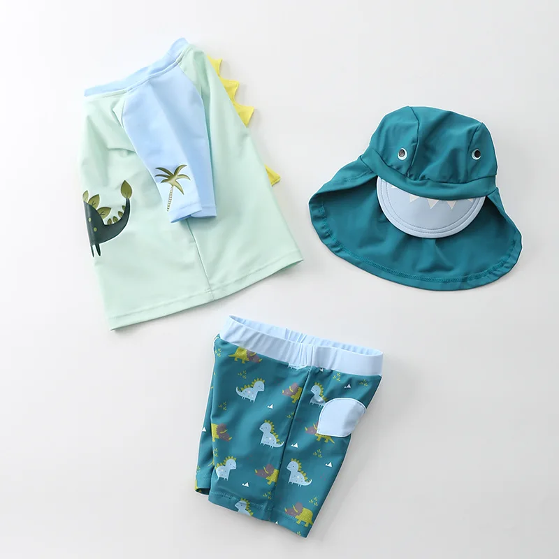 Купальник детский, 3 предмета, для мальчиков, с динозавром, акулой, летняя пляжная одежда для малышей, купальный костюм с УФ-защитой