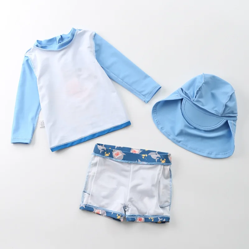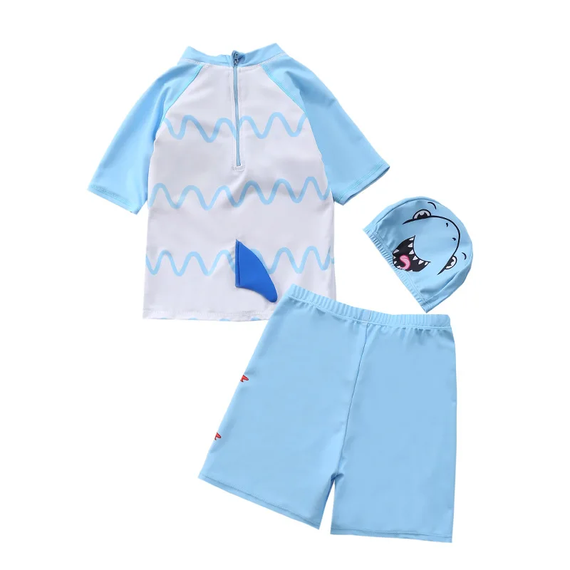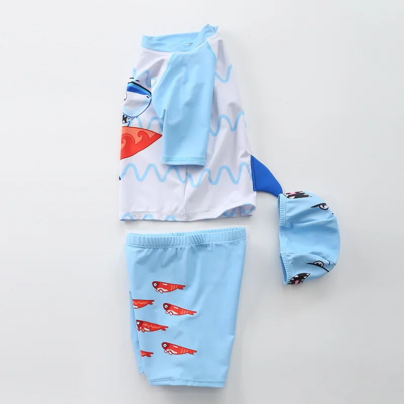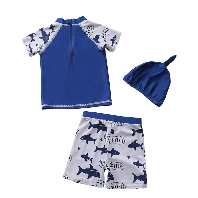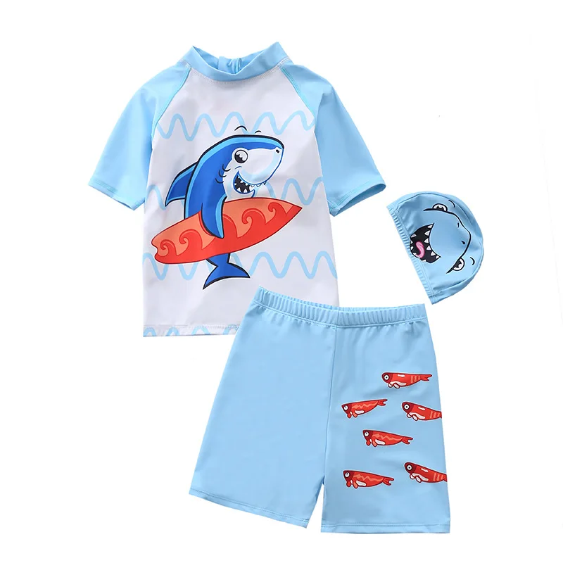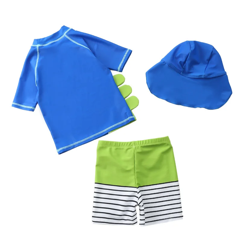 Купальник детский, 3 предмета, для мальчиков, с динозавром, акулой, летняя пляжная одежда для малышей, купальный костюм с УФ-защитой