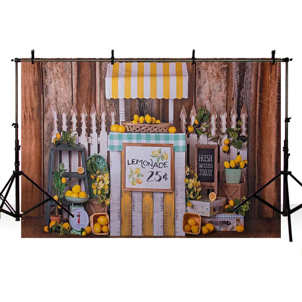 Фон для фотосъемки Mehofond с деревянной подставкой для летом, свежий лимон, фрукты, детский портрет, фотозона, фотостудия