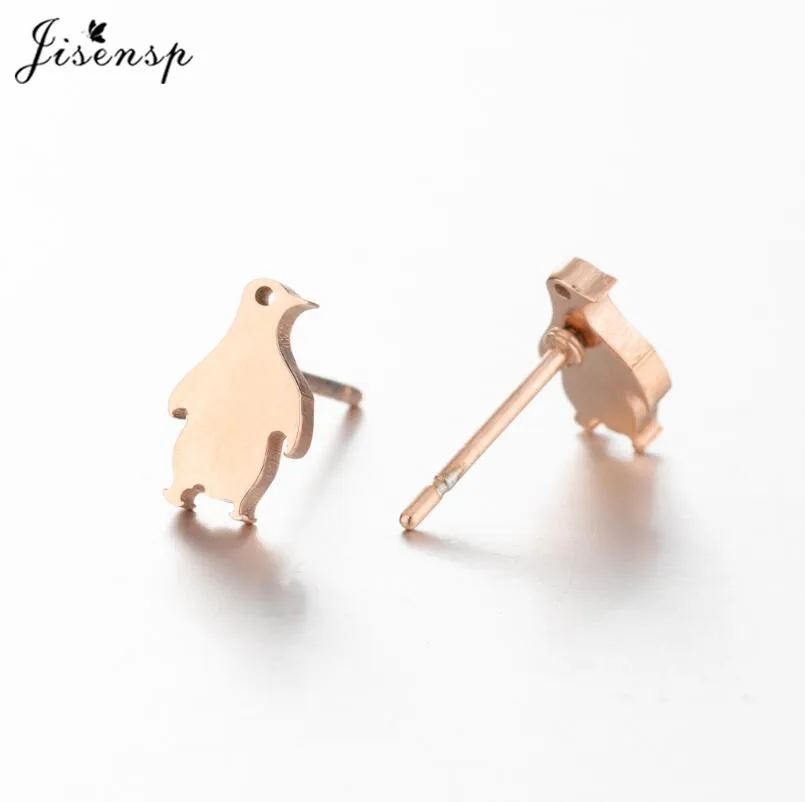 Простые креативные серьги Jisensp из нержавеющей стали, милые серьги-гвоздики в виде пингвина, модные ювелирные изделия в виде животных для женщин, детей, подарок Вечерние