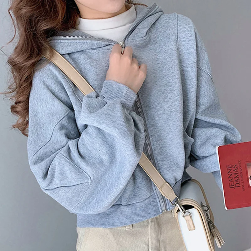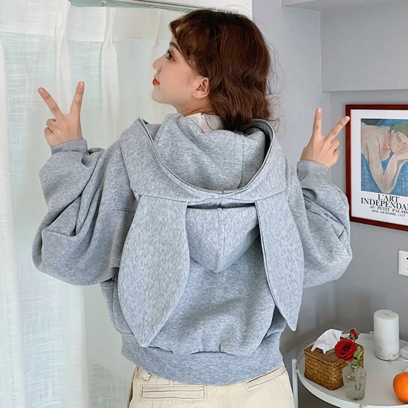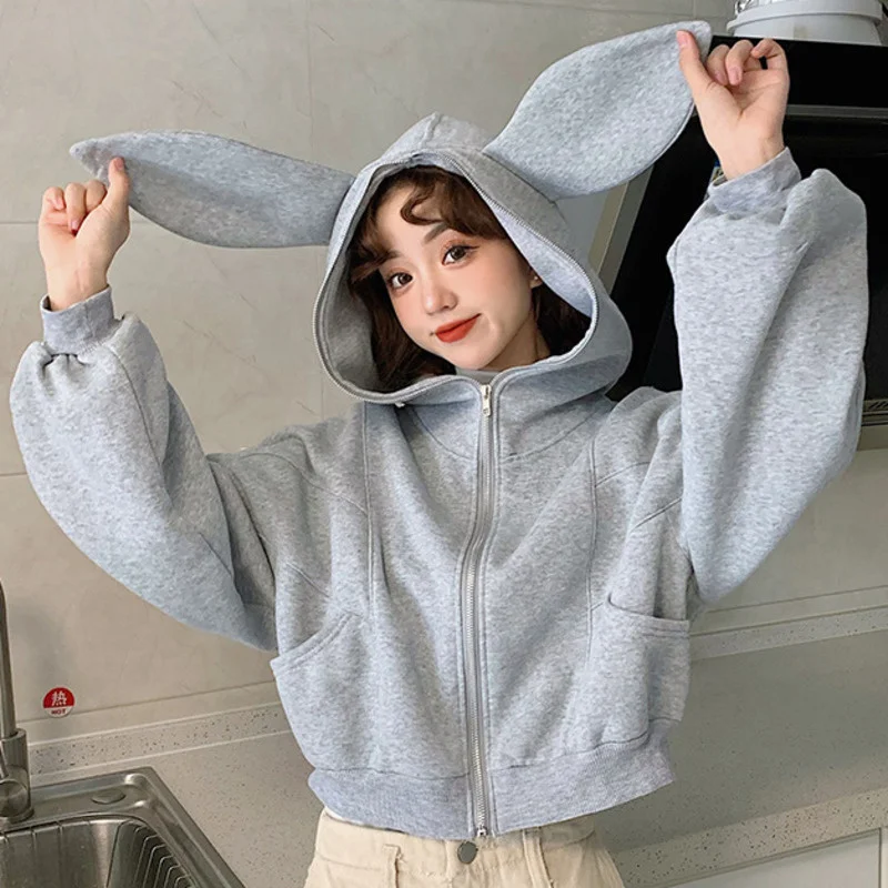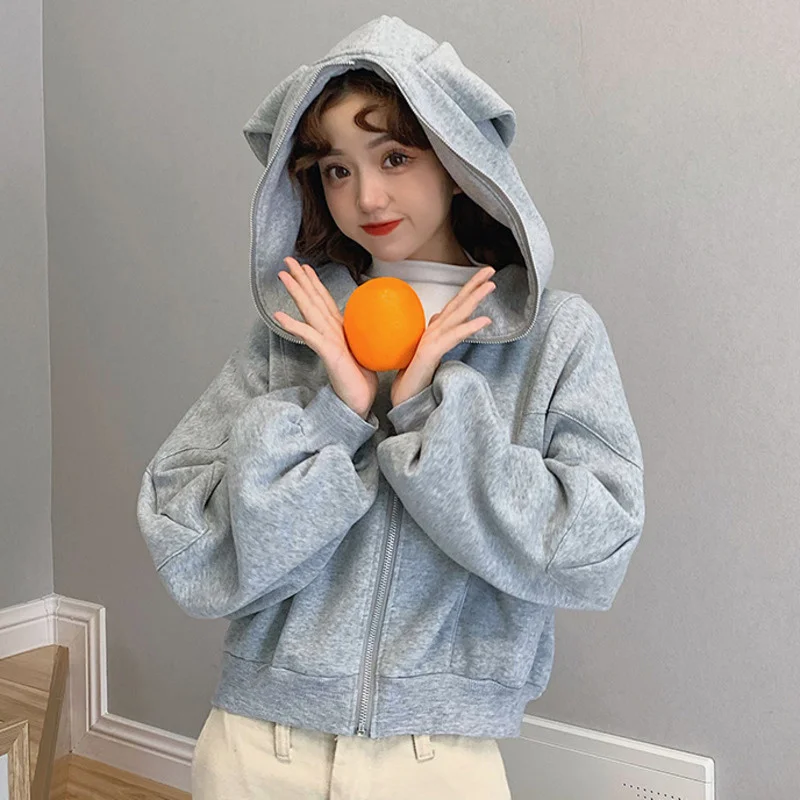 Женская толстовка с капюшоном и ушками кролика, повседневная Короткая Толстовка с капюшоном и длинным рукавом, на молнии, весна-осень 2021