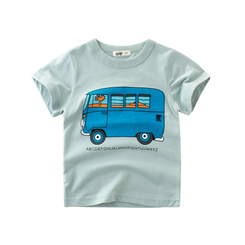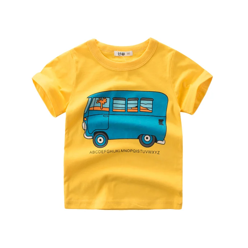 Детская летняя футболка с коротким рукавом и О-образным вырезом с принтом динозавра автокран самолет, футболки и топы для детей, детские хлопковые футболки Одежда для маленьких мальчиков детские От 1 до 9 лет