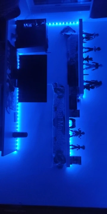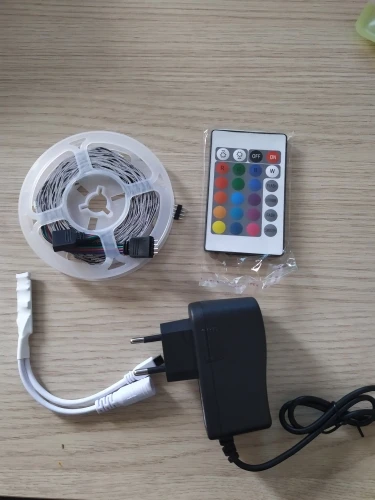 Отличный продукт, поставляется с пультом дистанционного управления, чтобы изменить интенсивность и цвет светодиодов, лучшее, что полоска является клейкой и может быть приклеена очень легко где угодно. Я вовремя. Спасибо, спасибо.