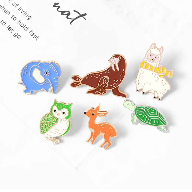 Забавные Животные зоопарк эмалевые Броши морж Альпака олень Сова че...