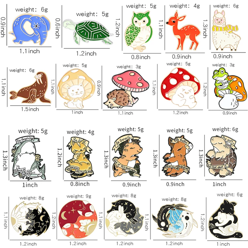 Милые эмалированные булавки в форме грибов, лягушки, ежика, кролика...