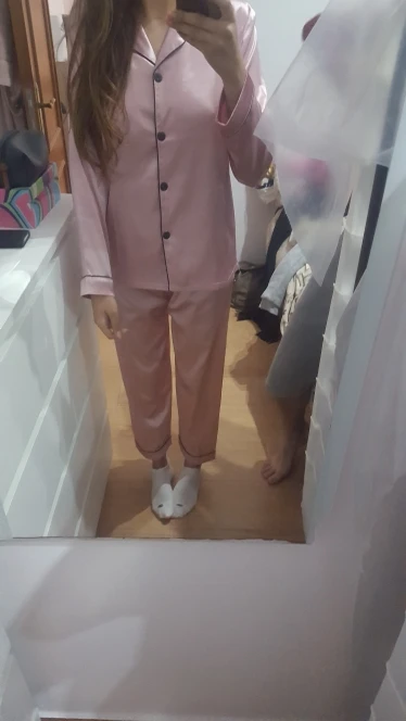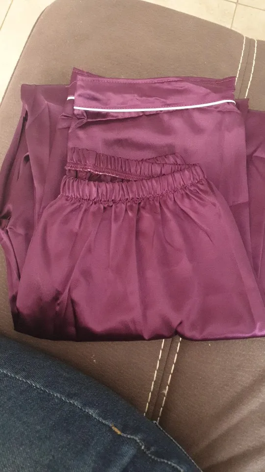 Доставили быстро. Приятный материал для пижамы и все швы красиво сшиты. Предоставленная Таблица размеров является очень точной и может заказать идеальный размер. Жена действительно любит пижаму.