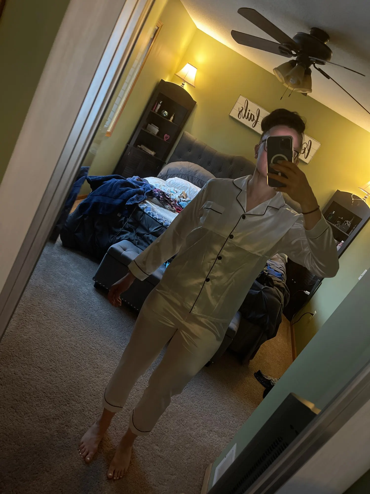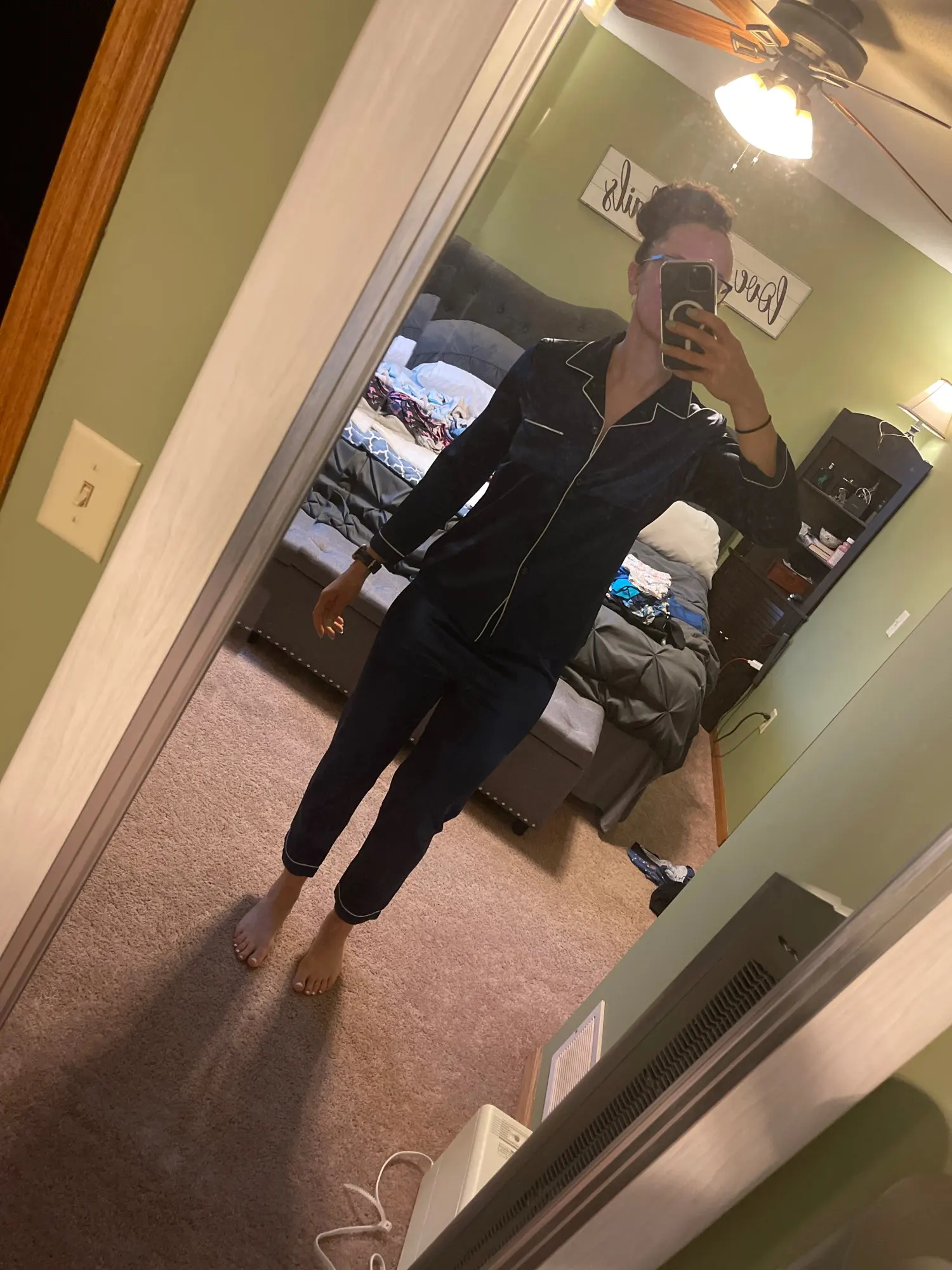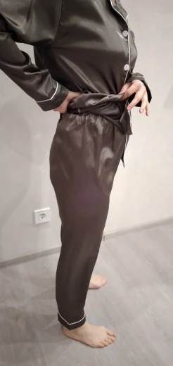 Серьезно, это самая шикарная пижама в моей жизни. Запаха неприятного не было. Ткань очень легкая и приятная коже. В Новосибирск доставка заняла чуть больше 2 недель. Наверное возьму себе ещё в другом цвете. На параметры 88/63/94 заказывала XL, чтобы было не по фигуре, а слегка свободно, так вот думаю штаны на размер меньше были бы мне впритык. Поэтому, если хотите, чтобы было свободно, берите на размер больше своего точно, а то и на два.