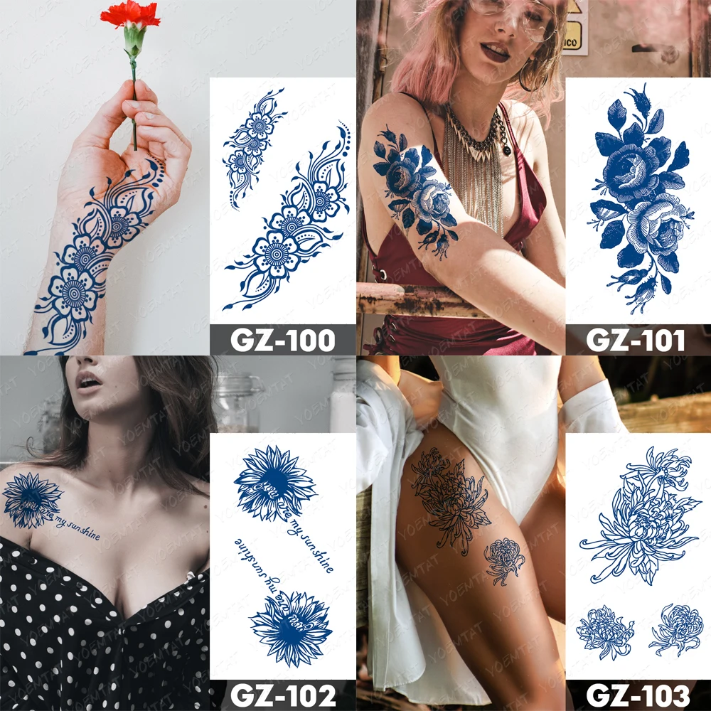 Сок прочного Водонепроницаемый Временная тату-наклейка для ожерелье Мандала хенна флэш-тату индийский женский боди-арт поддельные татуировки золотого и серебряного натуральный