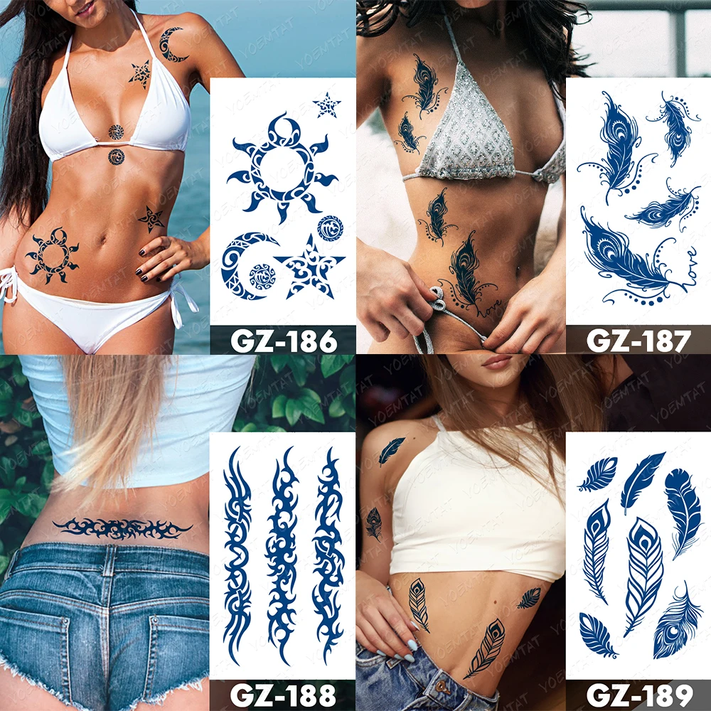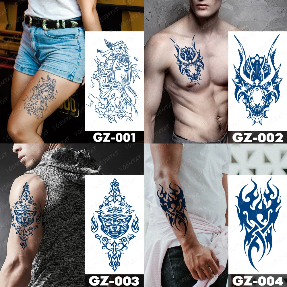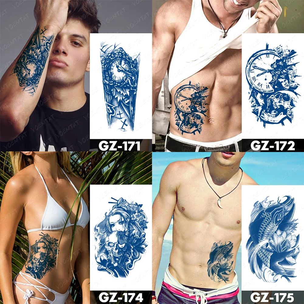 После контакта с кожей, окислительно активированный пигмент будет выглядеть синим и черным, что также является цветом настоящей татуировки. Не бойтесь потереть, это более Реалистичная татуировка на две недели Новые материалы, отличные цвета, более реальные