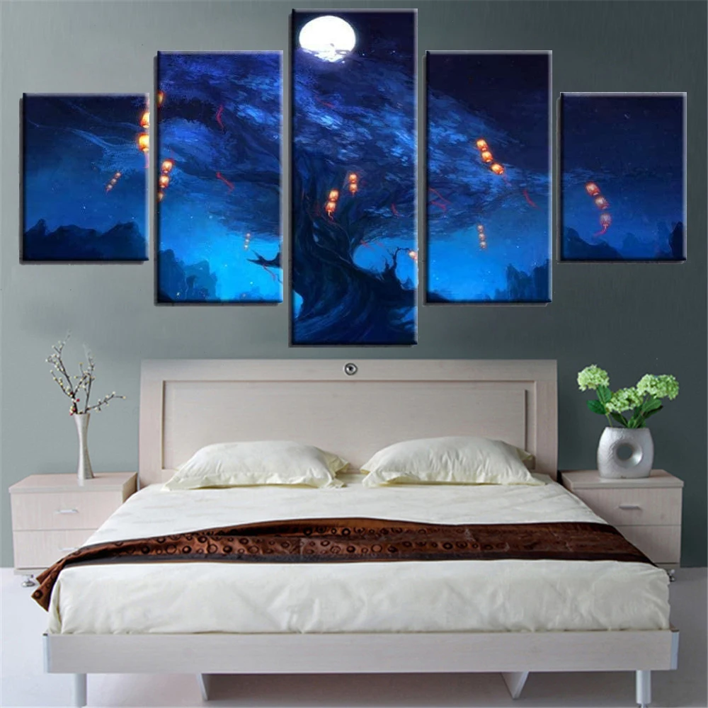 Настенная живопись на холсте, HD принты, 5 шт., полнолунная Ночная ...