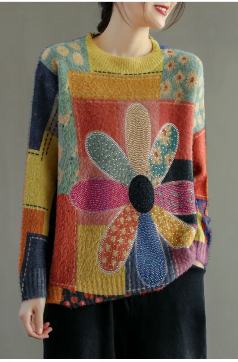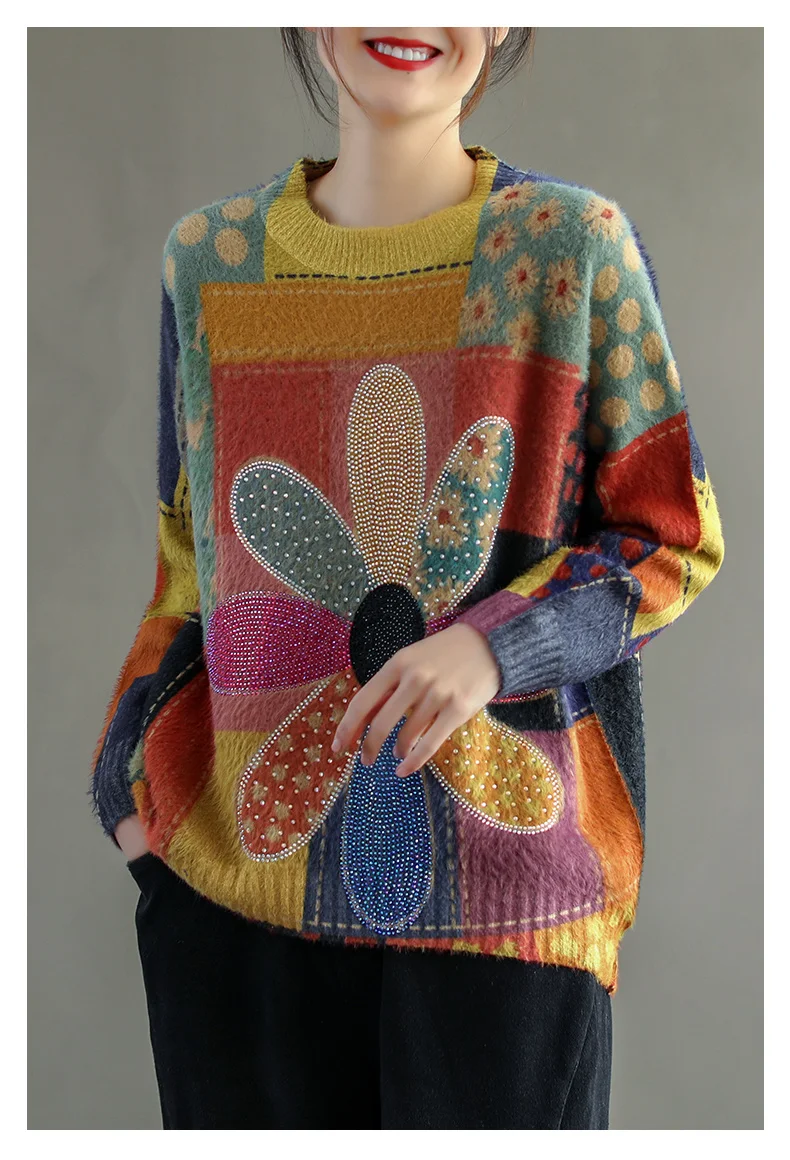 Свитер женский с цветочным принтом Max LuLu, свободный, весенний, Повседневный, большого размера