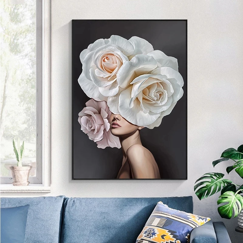 Настенная картина в скандинавском стиле с изображением леди и розовых белых цветов, абстрактная Женская картина, постеры и печать на стене для гостиной, домашний декор