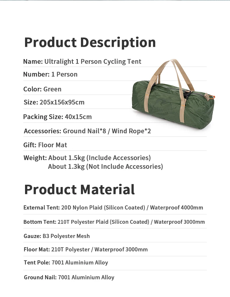 NameUltralight 1 Person Cycling Tent