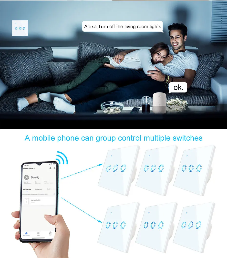 Умный сенсорсветильник ключатель с Wi-Fi управлением, 1 клавиша, 2 клавиши, 3 клавиши, 3 канала, управление через Wi-Fi, работает с Siri, Alexa и Google Home, голосовое управление